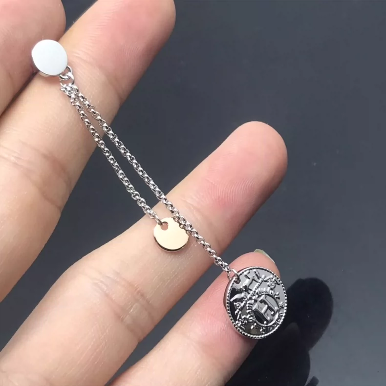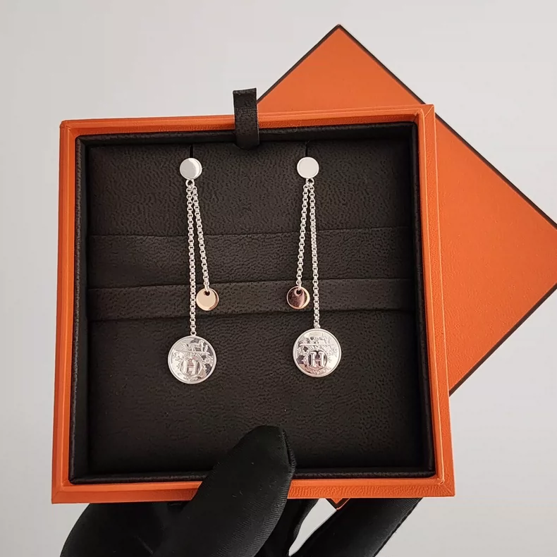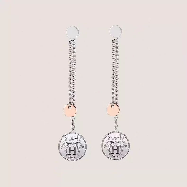 Diseño icónico de Hermès: pendientes New H Coin de tamaño compacto, confeccionadas en plata 925 (acabado pulido) y detalles en oro rosa 750, fusionando materiales nobles para un efecto sofisticado. Destacan por el patrón “sello de libro” —templado por el tiempo y símbolo de la herencia clásica de la marca—, grabado con precisión en la superficie del “coin” (moneda). Ligeras y confortables, equipadas con cierre seguro para orejas sensibles, adaptándose a uso diario o ocasiones formales. Materiales hypoalérgicos y resistentes, garantizando durabilidad y brillo a lo largo del tiempo. La combinación de modernidad (tamaño pequeño) y tradición (sello de libro) refleja la elegancia atemporal de Hermès. Limpia con paño suave para preservar los metales. #HermèsNewHCoin #PendientesOroRosaPlata #JoyeriaClásica